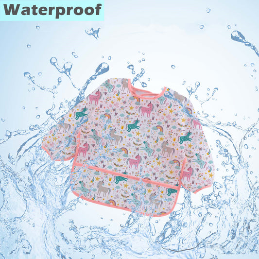 Waterproof Long Sleeved Bib 3 PCS Baby Bibs with Pocket Fits Ages 3-24 Months HaimoBurg